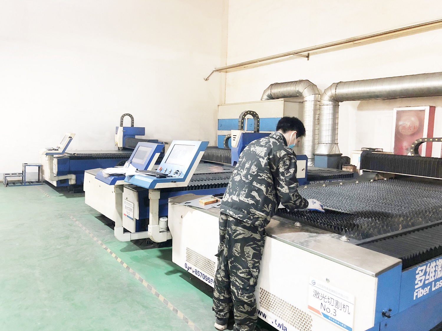 第一步下料:下料是指確定制作某個設備或產品所需的材料形狀、數(shù)量或質量后,從整個或整批材料中取下一定形狀、數(shù)量或質量的材料的操作過程。操作時就需要根據(jù)產品圖紙的要求,在專用切割機上將板材切下。